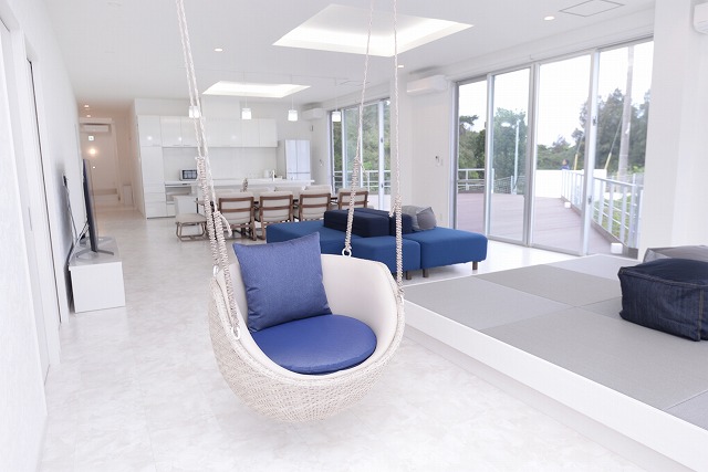 日ごろの疲れをいたしたり、沖縄を海を眺めたり、仲間と”和気あいあい”をBBQなどで楽しめるように、広いスペースです。