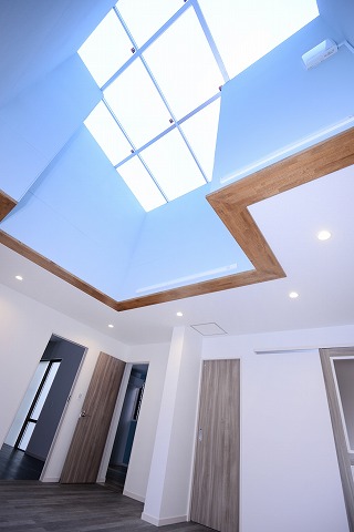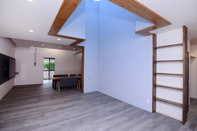 ここ地いい解放感をつくるリビングの吹き抜け。 家族が一緒に過ごすスペース広くし、自然の光をたっぷりとりえれた空間